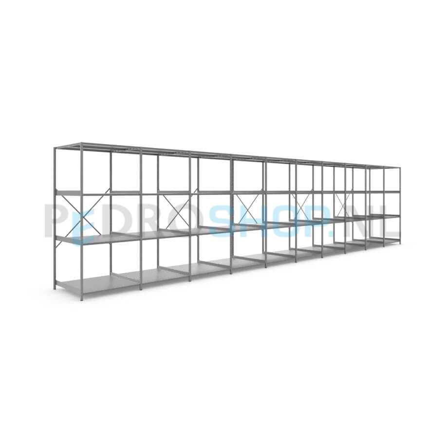 Metalen stellingkast: 230cm (h) x 100cm (d) x 1009.6cm (l)