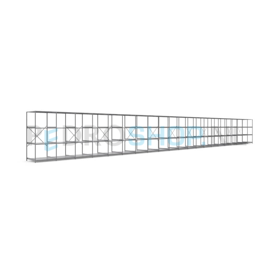 Metalen stellingkast: 230cm (h) x 100cm (d) x 2116.2cm (l)
