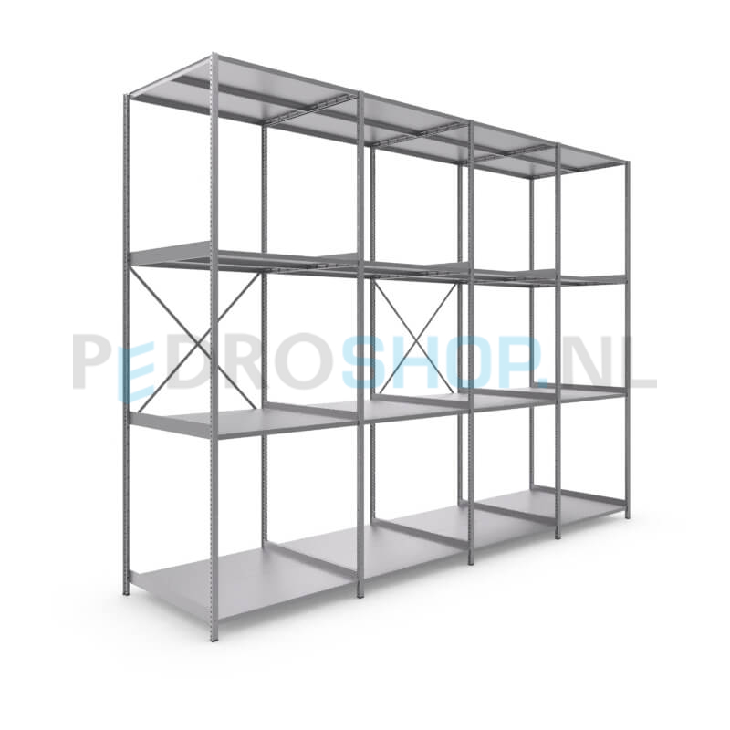 Met de GS-3 metalen stelling voor uw garage, magazijn of showroom kiest u voor een hoogwaardige kwaliteit metalen / ijzeren stellingkast. De GS-3 stijlen, GS-3 dragers, metalen GS-3 legborden en vele accessoires van de GS3 magazijnstelling worden gemaakt van hoogwaardig thermisch verzinkt staal (sendzimir). Kwaliteit gegarandeerd! De standaard onderdelen van de metalen GS3 stellingkasten zijn binnen enkele dagen leverbaar. Stel nu uw metalen magazijn rek stelling samen via onze handige configurator. In een aantal stappen kunt u online uw metalen stellingkast bestellen. Heeft u een groot magazijn in te richten met metalen legbord stellingen? Wij maken graag een passende offerte. Koop uw metalen rekken en stalen stellingen online bij Stellingspecialist.