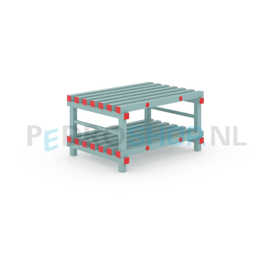 Kunststof stelling: 52cm (h) x 70cm (d) x 100cm (l)