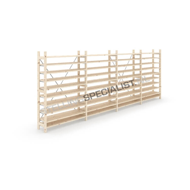 Houten stellingkast Easyrack: 150cm (h) x 30cm (d) x 403cm (l)