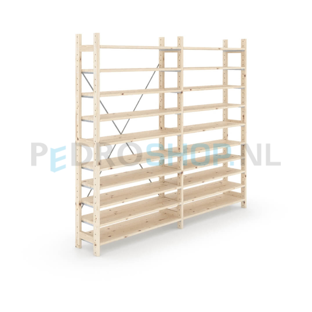 Houten stellingkast Easyrack: 180cm (h) x 30cm (d) x 203cm (l)