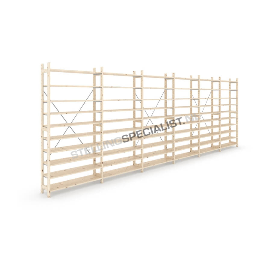 Eigen label houten stellingkast, dus goedkoop, flexibel en snel leverbaar! De onderdelen van de houten stellingen van ons eigen label zijn gemaakt van eersteklas Oost-Europees vurenhout en garanderen daarom jarenlang gebruiksgemak. Met de houten legbordstellingen en houten rekken kunt u uw magazijn eindeloos aanpassen, herinrichten en uitbreiden. U kiest voor betaalbare houten rekken, flexibiliteit met een goede kwaliteit! De houten stellingkast kunt u via onze handige configurator in een aantal stappen online samenstellen. Online uw houten stellingkast bestellen is nog nooit zo makkelijk geweest. Heeft u een groot archief in te richten met houten stellingen? Wij maken graag een passende offerte. Houten stelling kopen? Dan bent u bij ons aan het juiste adres.