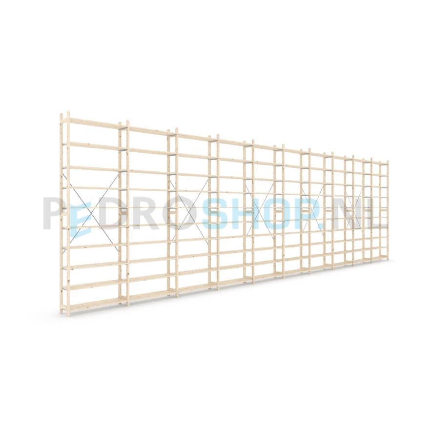 Houten stellingkast Easyrek: 300cm (h) x 30cm (d) x 1003cm (l)
